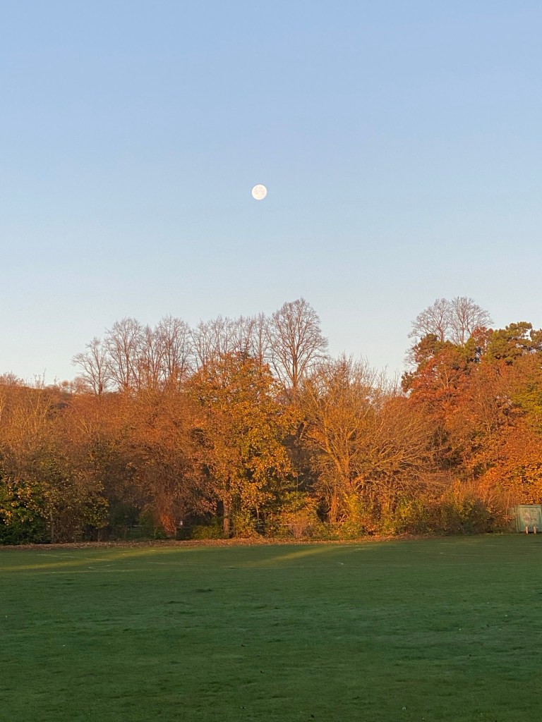 As the sun rose behind me some 90 million miles away and the Moon shone brightly 240,000 miles from my path I walked the planet Earth this morning. I looked up and took photo of both.