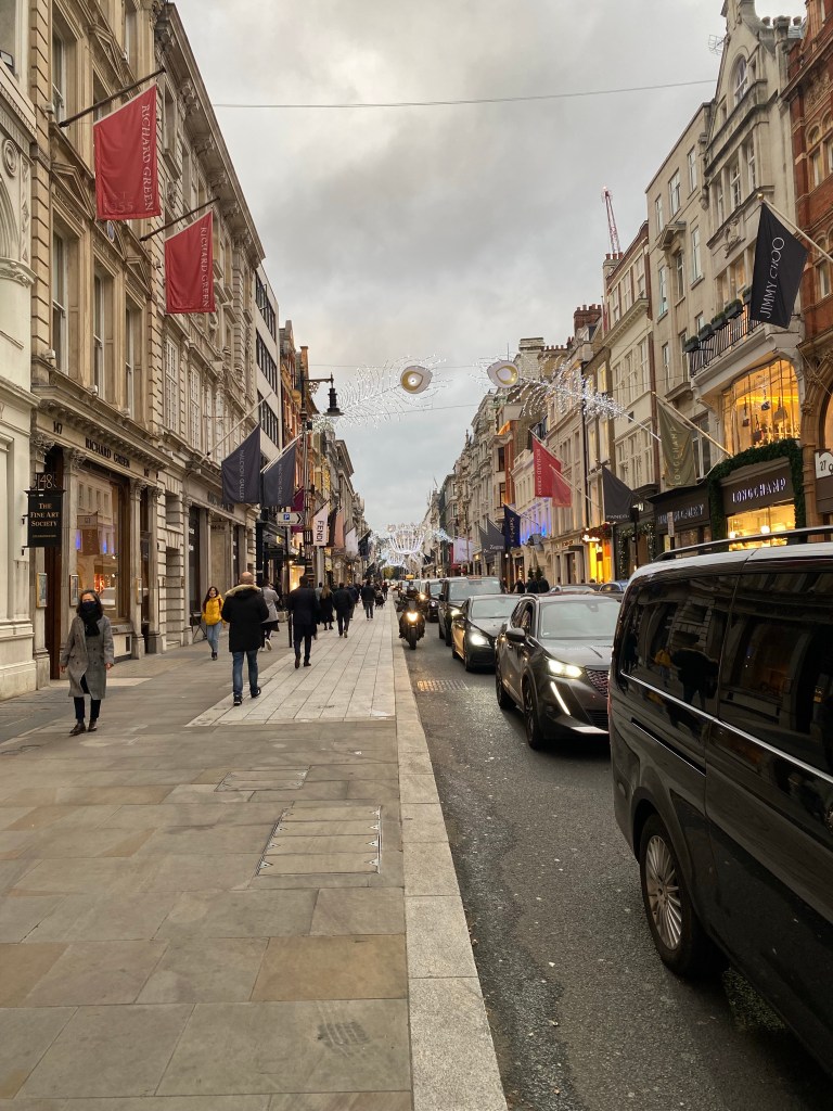 For those that don’t know London , Mayfair is that dark blue spot on the Monopoly Board and Bond Street is green. Ghost Town was quietly buzzing though the majority of shoppers propping up the pound were from the Middle East. There were few Brits on the strip. The shops look magnificent probably the best presented I’ve ever seen and the Christmas decorations illuminated above. The reality remains that these properties are some of the most expensive in the world though they are in reality brand adverts waiting for the online miracles hopefully happening online.