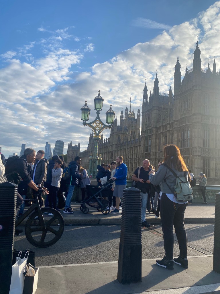 So many issues are clouded over Parliament these days . The photograph tells the story of just a few. On Westminster Bridge we see it these days with a line of bollards to protect from terrorism and at the same time the cyclists whose intrusive lane has stolen valuable road. Cars now back up to and beyond the Waterloo bridge as the narrow road and 20mph cram the snails in the cars. The masses of people have set up shop on the bridge playing loud music to the masses crossing the River to and fro like Yo Yo Ma on speed. Every race known to mankind on the bridge in London.