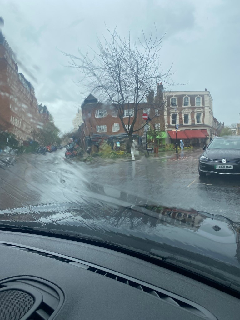 What a wonderful hour I have spent having driven to Chelsea Green to the place of my birth. Took takeaway coffee and croissant from Birley Bakery and sat in my car with the rain of London Town falling upon me. This blog following.