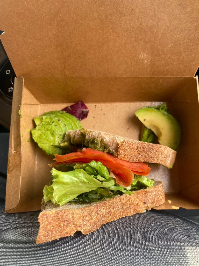 Feeling peckish I saw a cafe at the end of the road. I ordered a takeaway smoked salmon, lettuce and avacado sandwich. The girl serving spoke only Russian but in her broken English told me it was an open sandwich cost £10. I told her that to eat it I needed to get hold of it. Her manager like quizzically at me wondering if I had just walked out of Harrods. She offered to put another slice of sourdough on top to get hold of it. I slipped to the toilet and was then handed a tiny brown box as the charger contactless was thrust towards me. £13.50 , it was too late to protest and my Russian was poor. I hit the button and surpassed £100. I went to the car , opened the box and looked for the sandwich. 10 minutes later I found it, ate it and loved every morsel. I felt goodness draining through my body and money draining from my side. It was healthy utopia as I vowed not to come back. Lunch at Launceston, a real treat on a wet afternoon in the metropolis. I waited for my friend who was in a taxi coming from Gatwick off a not so Easy Jet flight. I thought of the traffic on the M25 and my head dulled, my brain bowed and the sourdough put me to sleep.