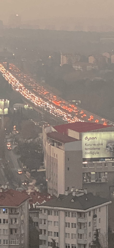 I leave you with the link to the song and some red lights on the road seen recently from my hotel room in Istanbul where the traffic is a nightmare.